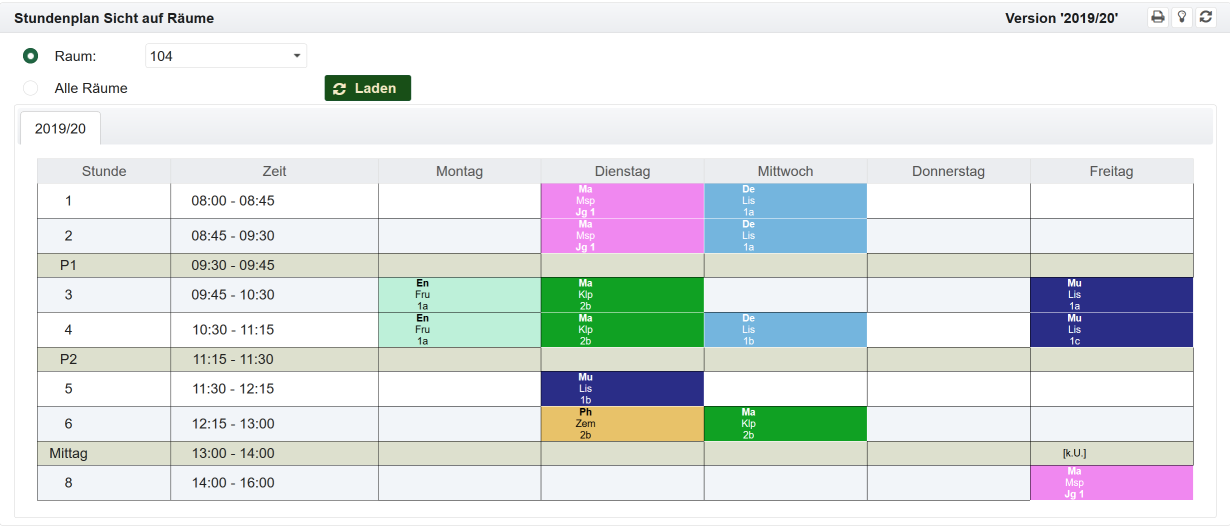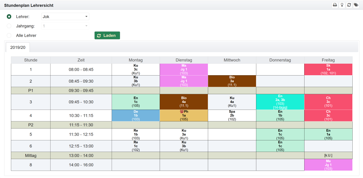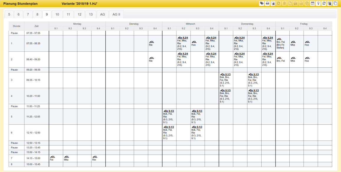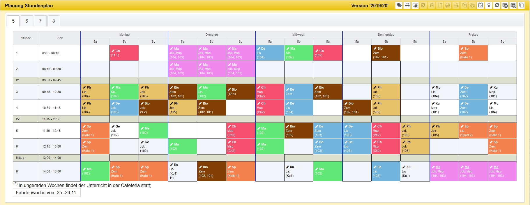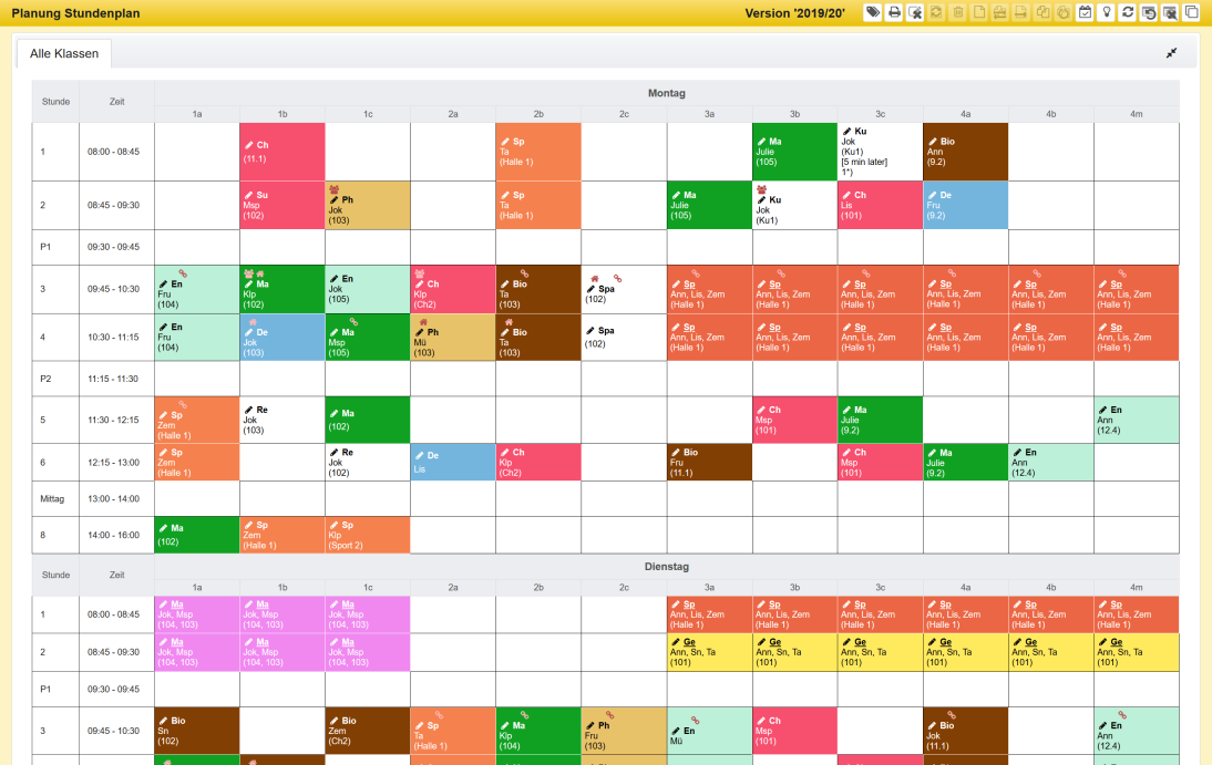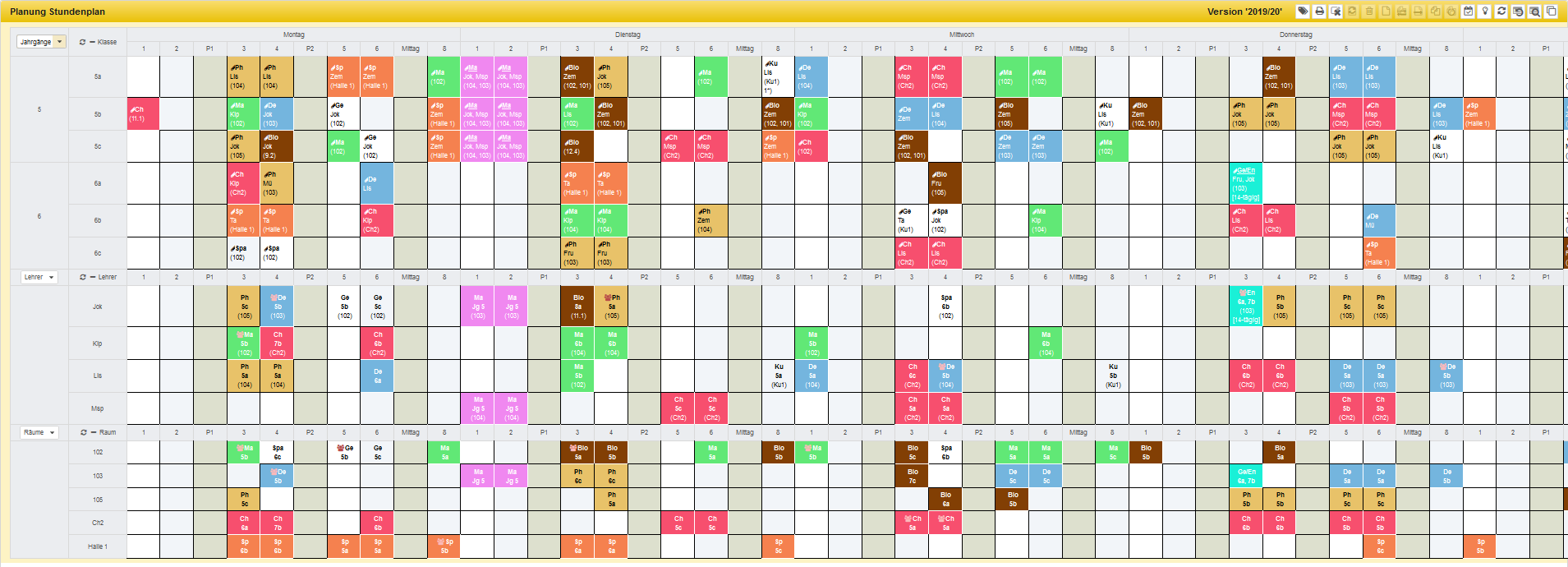 Stundenpläne für Lehrer, Räume oder Klassen. Die Planung kann allerdings