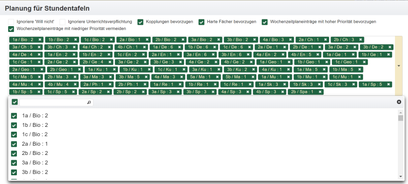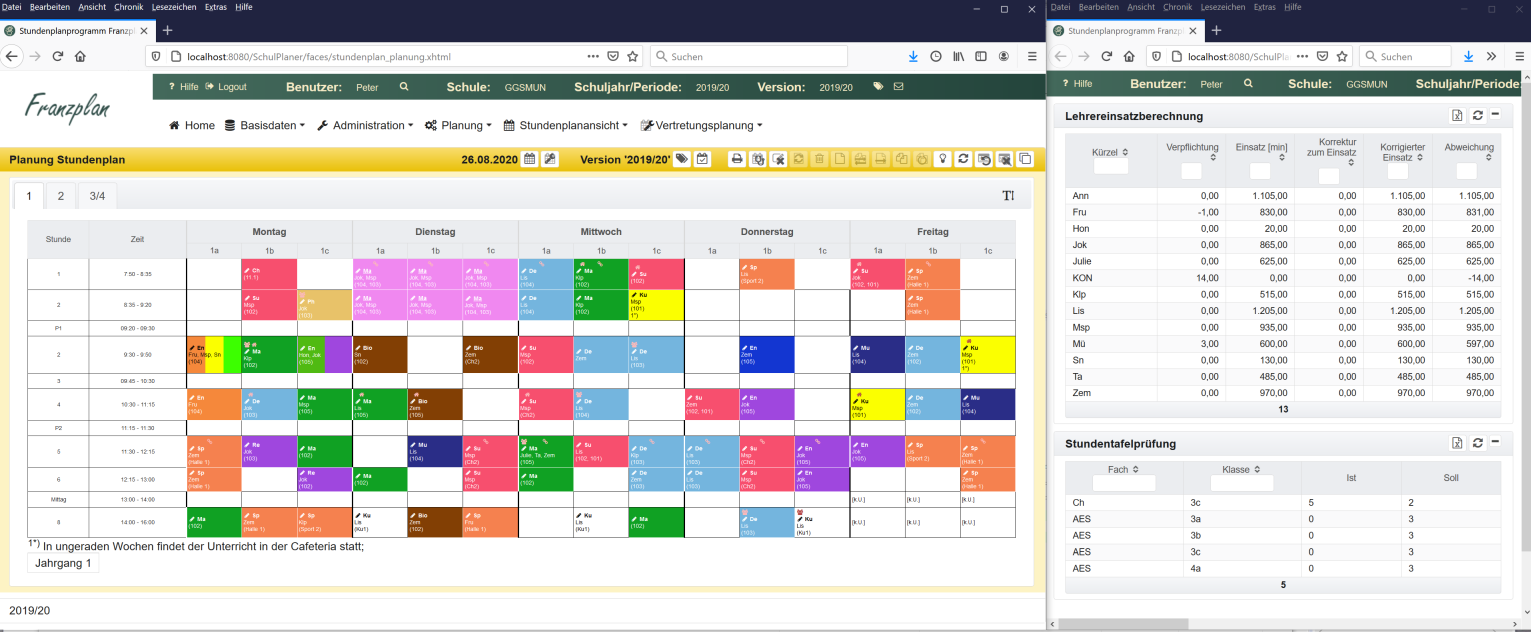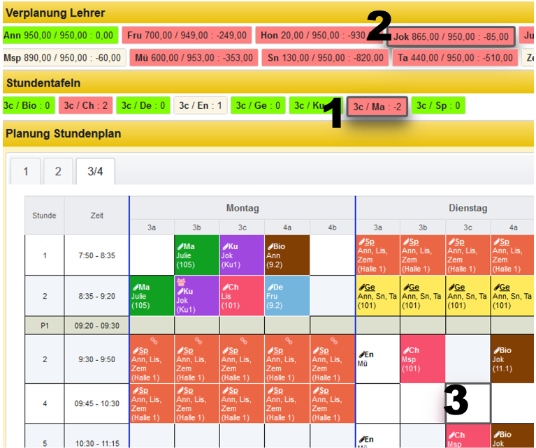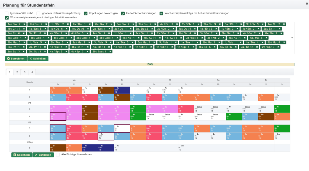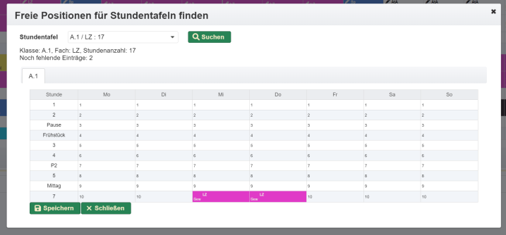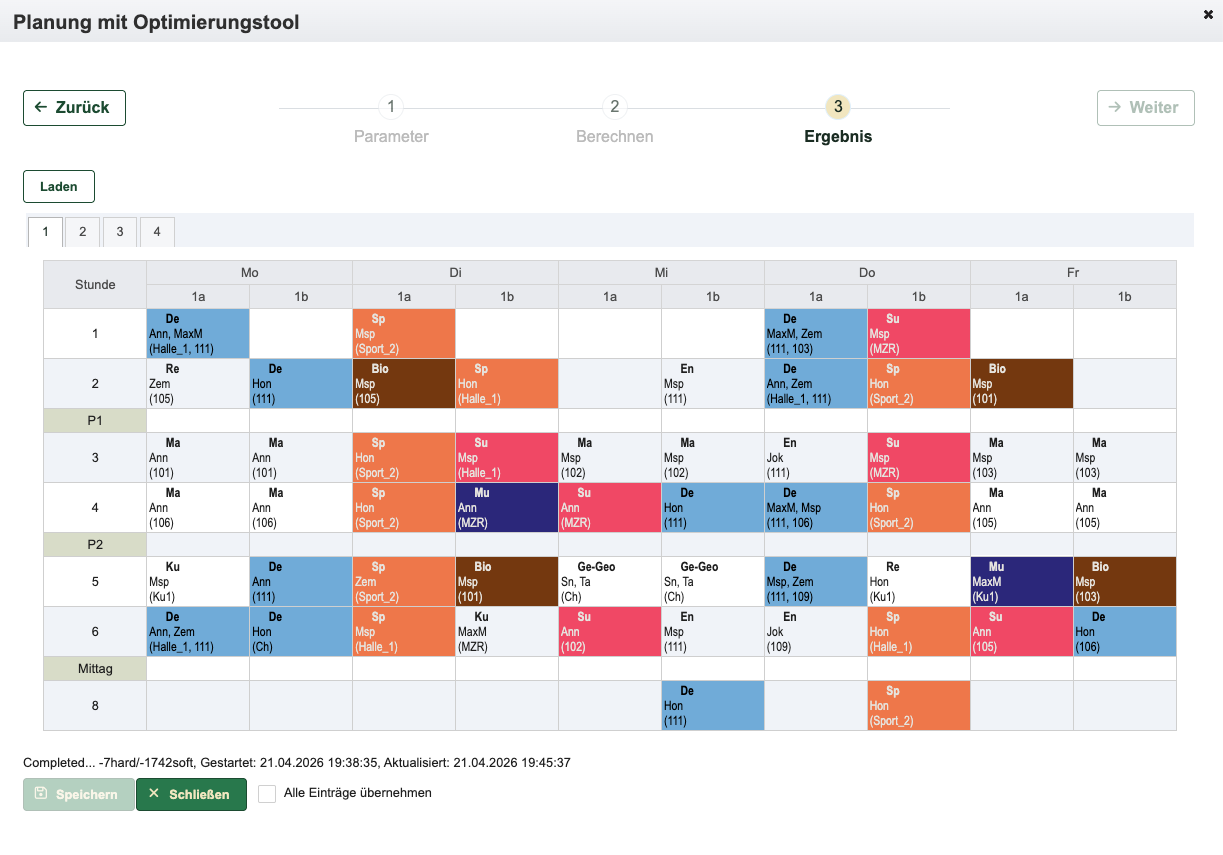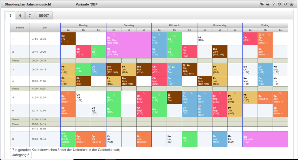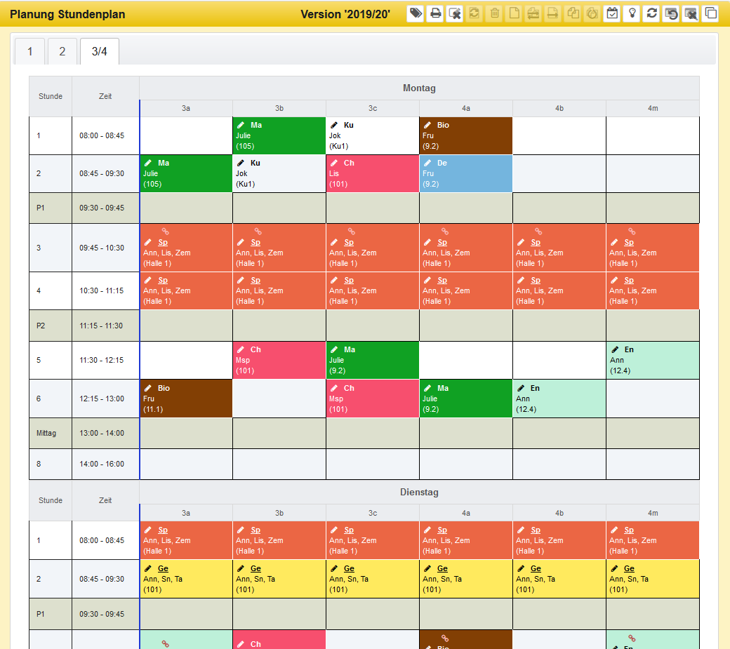 Stundenpläne für Lehrer, Räume oder Klassen. Die Planung kann allerdings