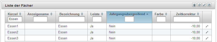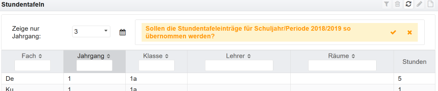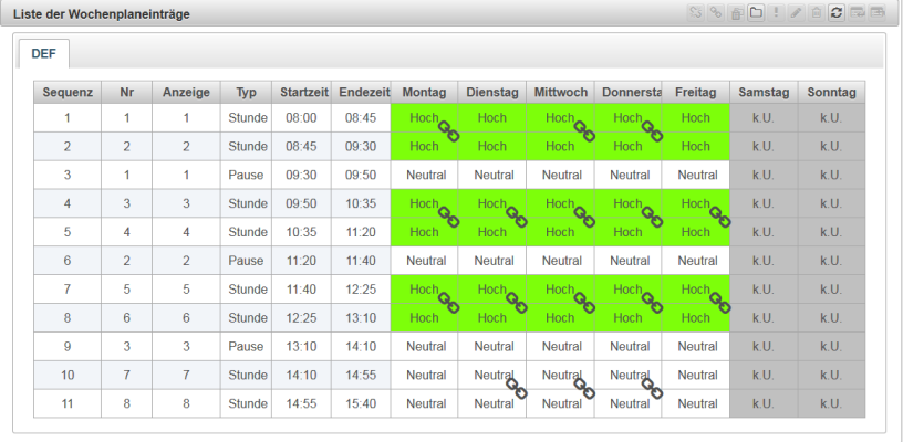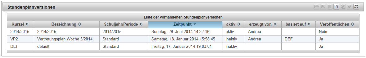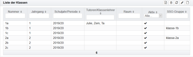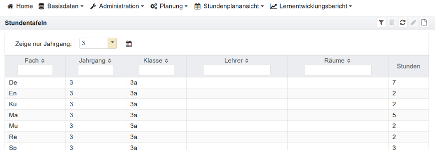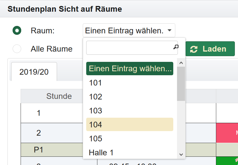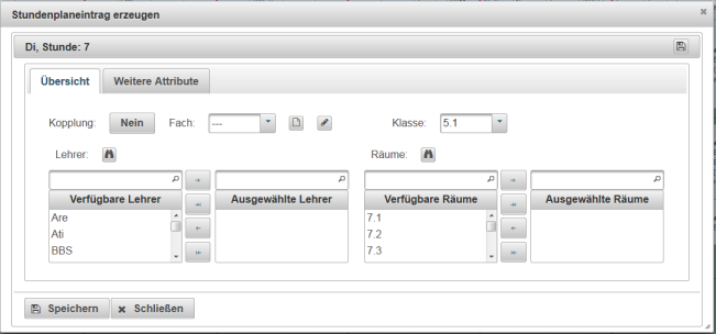 Die Bedienung der Ansichten für Klassen, Lehrer oder Räume erfolgt im