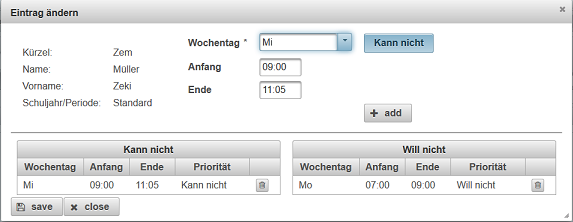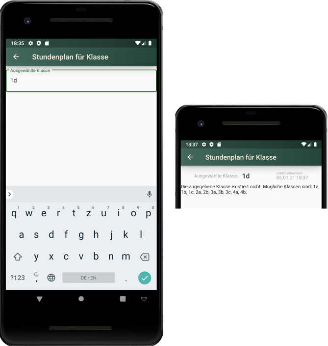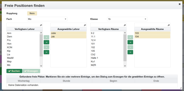 eingegebene Klasse (der Raum oder der Lehrer) nicht existieren, erfolgt
