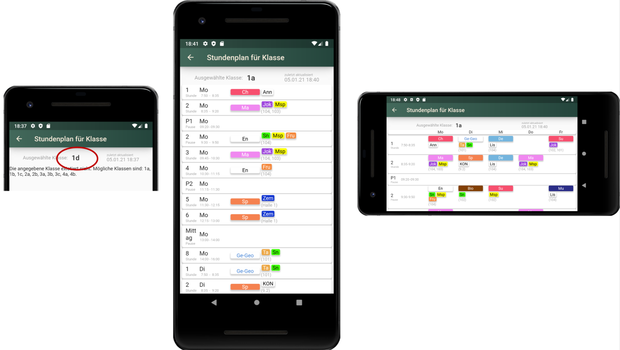 Die Stundenpläne werden sowohl in der Porträtansicht als auch in der