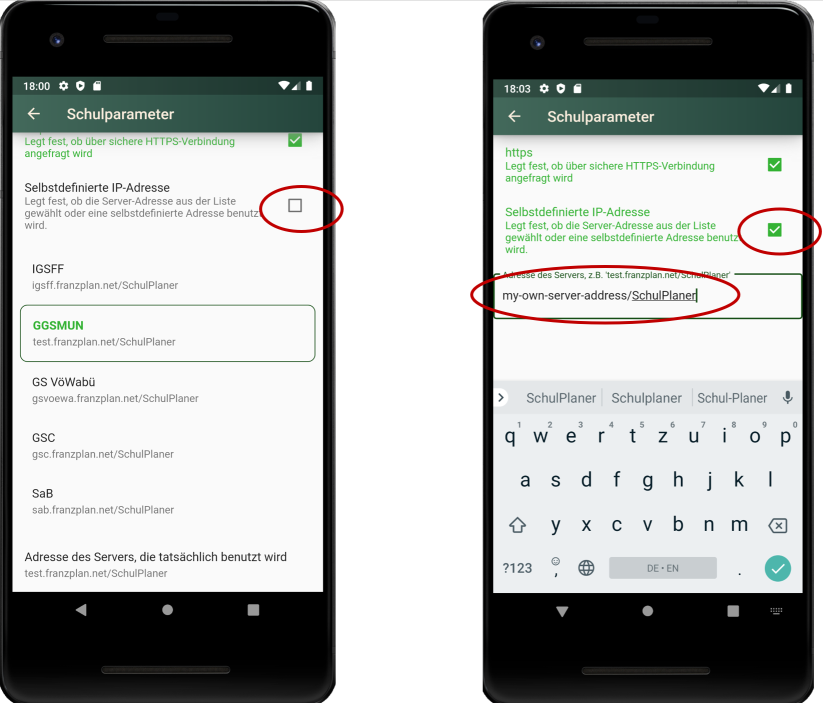 Einträge direkt ausgewählt werden. Wenn der Schulserver in der Liste