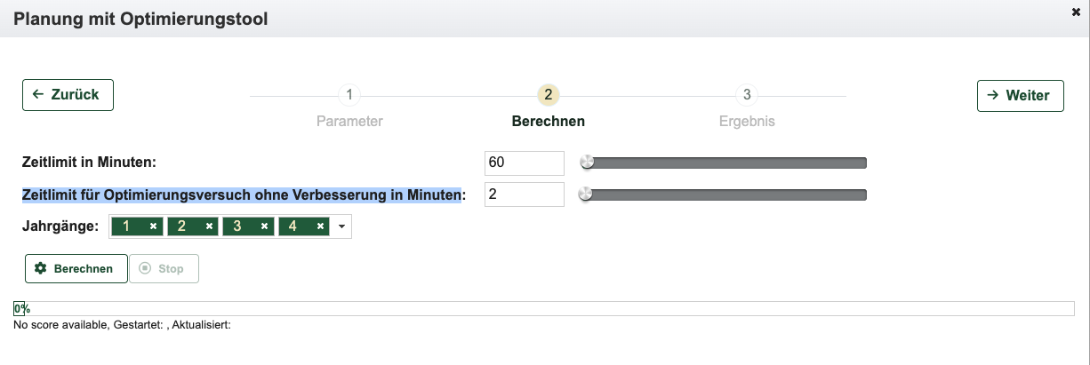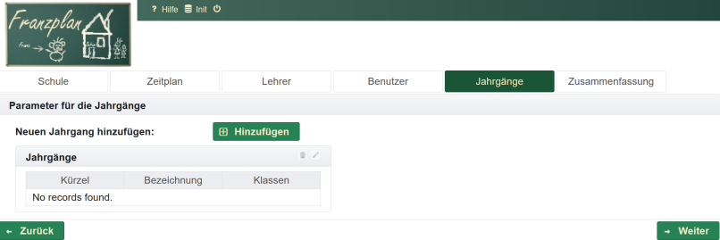 Wenn noch nie ein Stundenplan abgerufen wurde, wird zunächst nach der