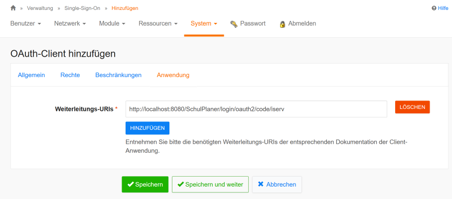 | spring.security.oauth2.client.registration.iserv.redirect-uri | Url für den Redirect nach erfolgreicher Authentifizierung bei