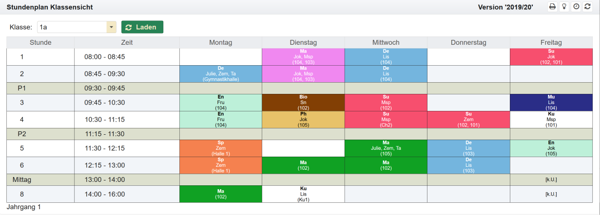 Hier ist der Stundenplan für alle Klassen aufgeführt.