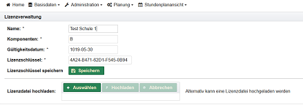 Zur Konfiguration des Schulservers öffnet man das Menü