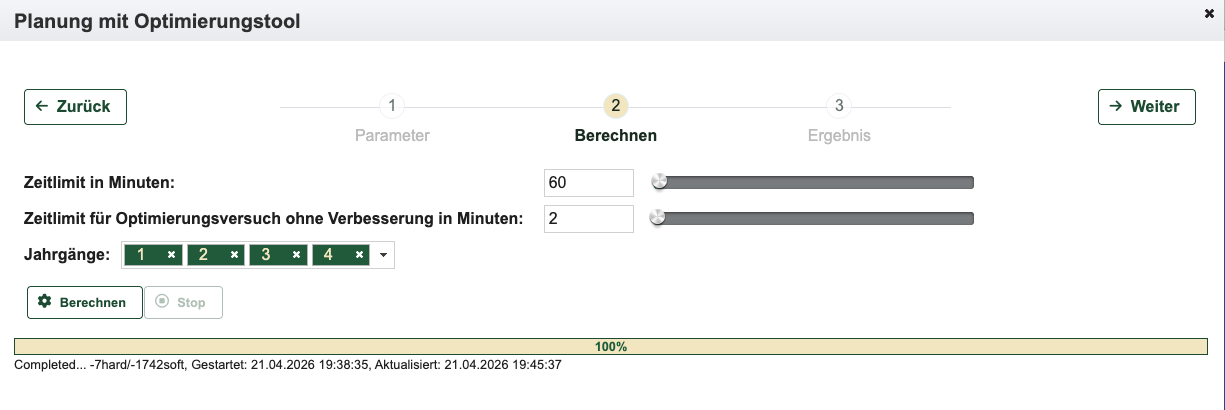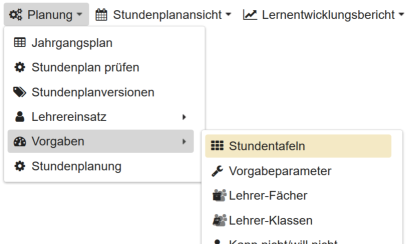 Aus der Planungsansicht kann der Stundenplan für alle Klassen exportiert werden. Erzeugt wird ein JSON-Format.