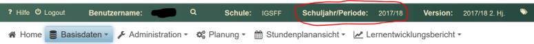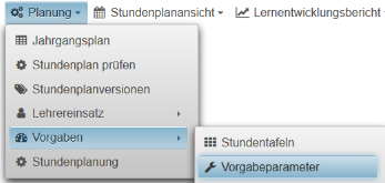 Kopfzeile und klickt auf den Menüpunkt Schulparameter.