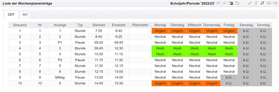 gilt für die Anzaige von Vertretungsplänen in der Planungssicht.