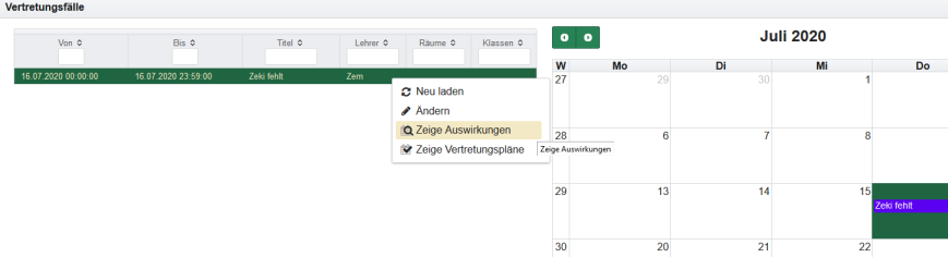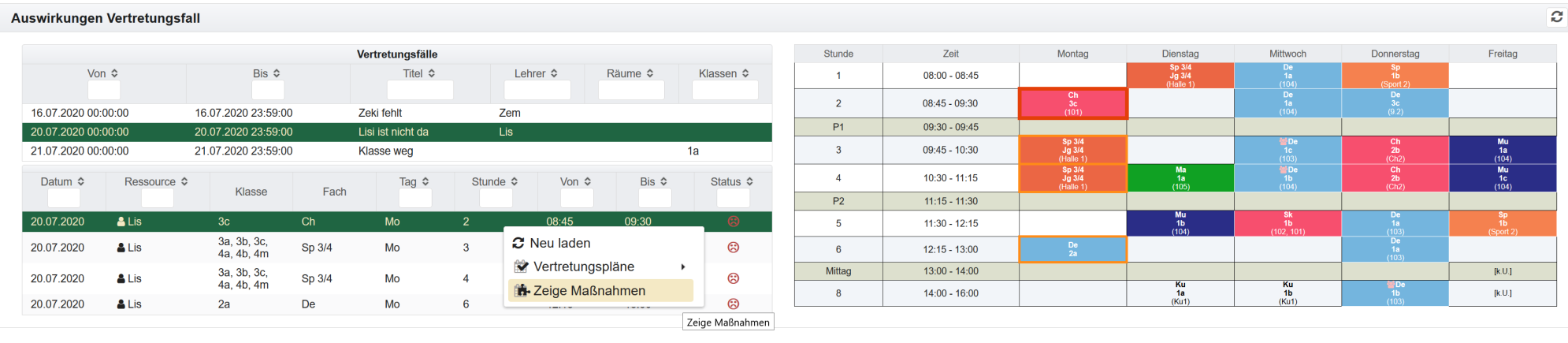 Hier wird die Seite inklusive der Auswirkungen, Vertretungsfälle und Maßnahmen neu geladen. |
