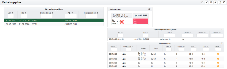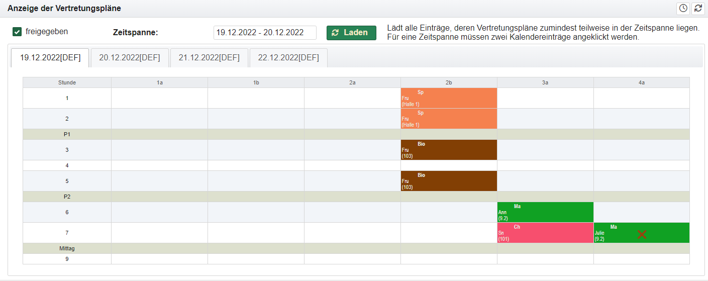 freigegebenen Vertretungsplänen. Diese können in dieser Ansicht
