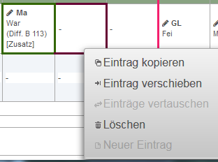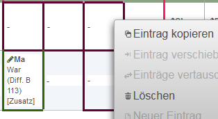 Durch Anklicken des falschen Eintrages öffnet sich das Eingabefeld